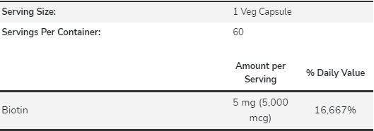 Now Foods Biotin 5000 mcg - 60 Veg Capsules