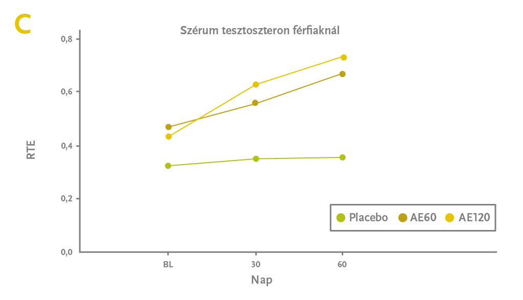 • Placeboról Ashwagandhára váltó csoport (30-60. nap): Jelentős növekedés.