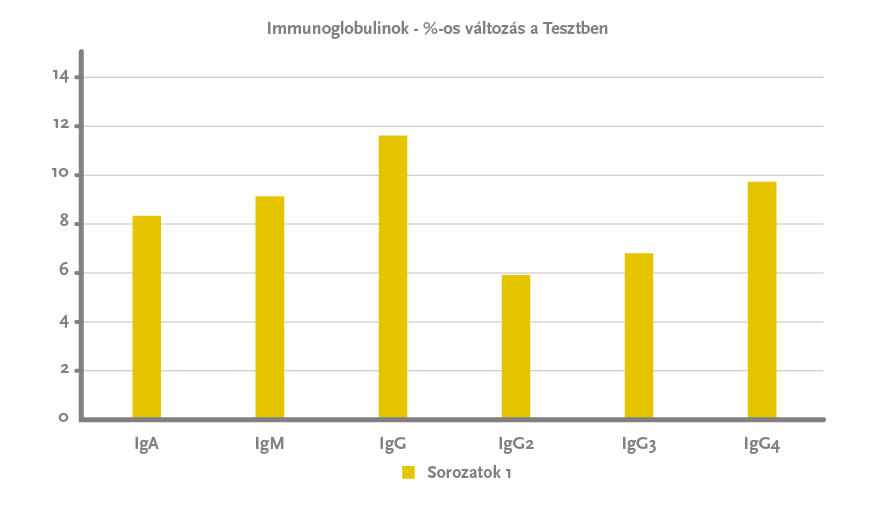 Az immunglobulinok az ellenanyagok, amelyek felismerik és semlegesítik a kórokozókat. Az IgG, IgA és IgM szintjének növekedése jobb humorális immunválaszt jelez, amely alapvető a fertőzések elleni védekezésben.