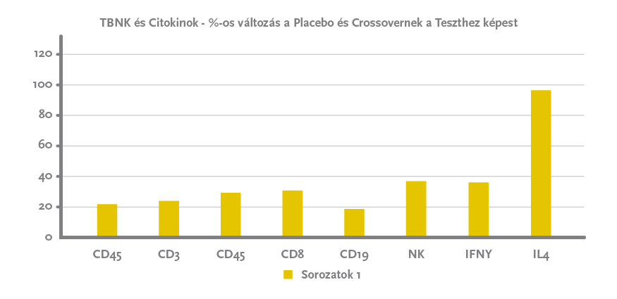 • Placeboról Ashwagandhára váltó csoport (30-60. nap): IFN-γ és IL-4 növekedése.