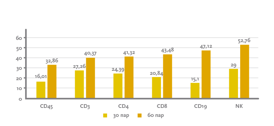 • Ashwagandha-csoport: Szignifikáns növekedés a következő sejtekben: