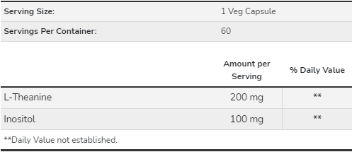 Az L-theanine egy aminosav a természetben a zöld teában található. Az L-Theanine elősegíti a pihenést anélkül, hogy álmosságot vagy negatív mellékhatást okozna. Az L-theanine is támogatja az egészséges szív-és érrendszeri funkciót ezen keresztül nyugtató hatású. Ez a készítmény tartalmaz inositolt is, ami tagja a B-vitamin családnak és nélkülözhetetlen az agy és az idegrendszer egészséges működéséhez.