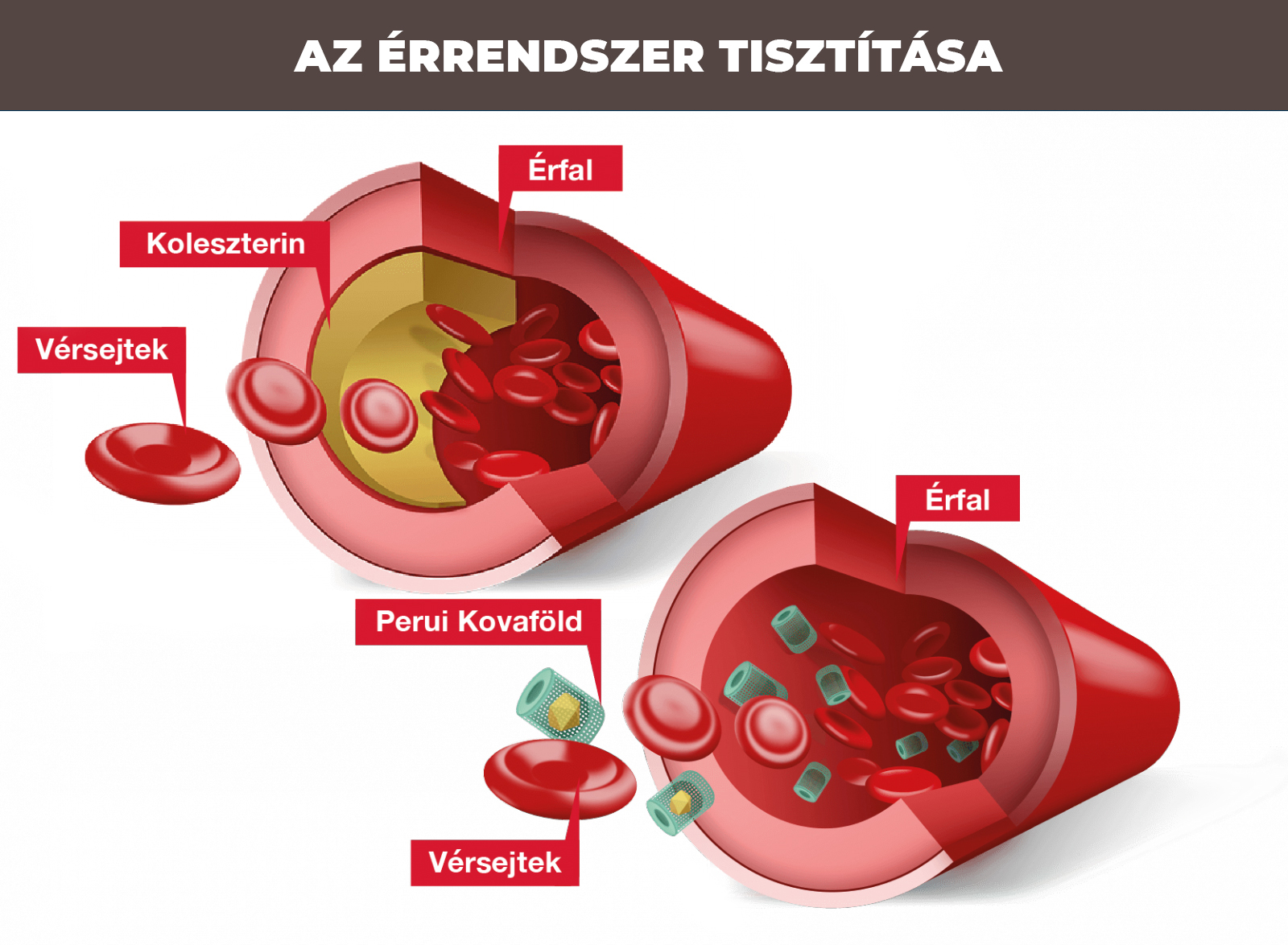 Egyetlen gramm Perui kovaföld 300 m2 bélfelületről képes felszívni és kivezetni a gyulladásos folyadékot, miközben a természetes bélflórát erősíti. Az apró hengerek erős negatív töltésükkel vonzzák és elnyelik a baktériumokat, gombákat, vírusokat, endotoxinokat, gyógyszer- és növényvédőszer-maradványokat, drogokat, nehézfémeket. Csapdába esnek a hengerekben és kiürülnek a szervezetből. A férgek, paraziták megsérülnek az éles élek által és elpusztulnak. A termék fogyasztói gyakran jelzik: ”Jobban érzem magam!”. Ez a jobb közérzet abból adódik, hogy minden káros lerakódás eltávolításra kerül a bélrendszerből. A tiszta emésztőrendszer sokkal hatékonyabban dolgozik, jóval több energiához jutunk és így az immunrendszer is hatékonyabbá válik.