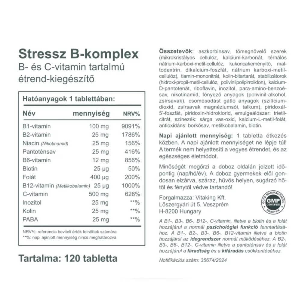 Vitaking Stressz B-komplex aktiv B12 vitaminnal és foláttal 120 vegán tabletta