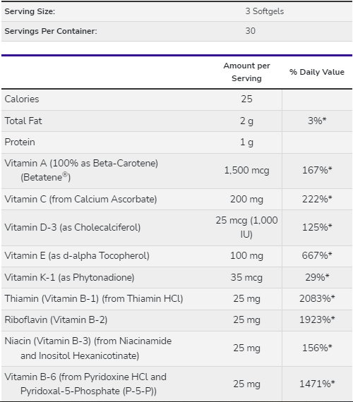 Egyéb összetevők: Softgel kapszula [szarvasmarha-zselatin (BSE-mentes), glicerin, víz, szentjánoskenyér], lenmagolaj, szója-lecitin és méhviasz.